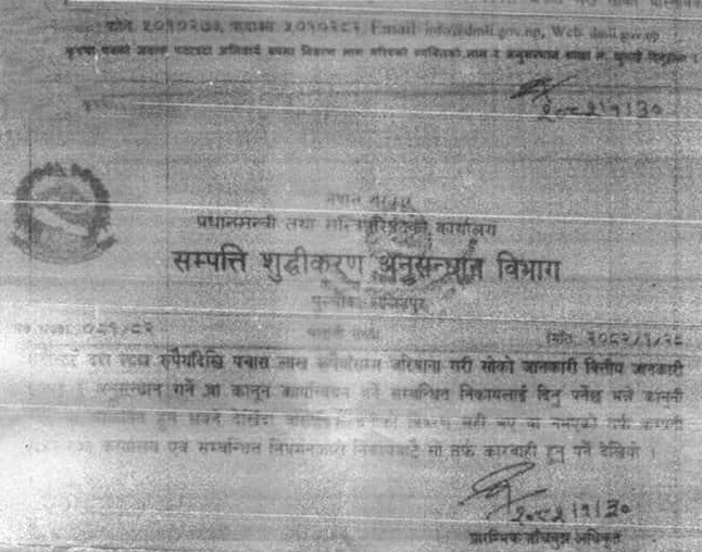 अख्तियार दुरुपयोग अनुसन्धान आयोग, नेपाल प्रहरी केन्द्रीय अनुसन्धान ब्युरो (सीआईबी), राजस्व अनुसन्धान विभाग र सम्पत्ति शुद्धीकरण अनुसन्धान विभागमा उजुरी परेको छ । तथापि, छानबिनको गति निक्कै सुस्त रहेको स्रोतले जनाएको छ । भट्टमात्रै होइन उहाँसँग प्रत्यक्ष जोडिएका शंकर ग्रुपका सञ्चालक सुलभ अग्रवालसमेत अनुसन्धानको दायरामा हुनुहुन्छ ।