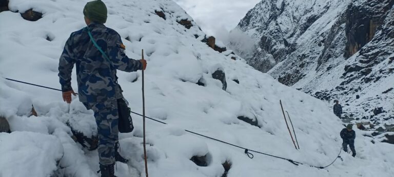 सशस्त्र प्रहरी बल नेपाल बिपद् ब्यबस्थापन बेश नारच्याङ म्याग्दी बाट अस्ति कार्तिक ११ गते उद्दारका लागि सुरक्षा फौज बेशक्याम्प तर्फ गएको थियो । सशस्त्र प्रहरी निरीक्षक बिनोद पौडेलको कमान्डमा गएको फौजले १७ बिदेशी पर्यटक सहित आज बिहान सम्म १ सय ६२ जनाको उद्दार गरेको हो । बाक्लो हिमपातका कारण जोखिममा परेका र बाटो पत्ता लगाउन नसकेर अलपत्र परेका पर्यटक हरुको डोरिको सहायताले बाटो पहिल्याउंदै उद्दार गरिएको हो ।
