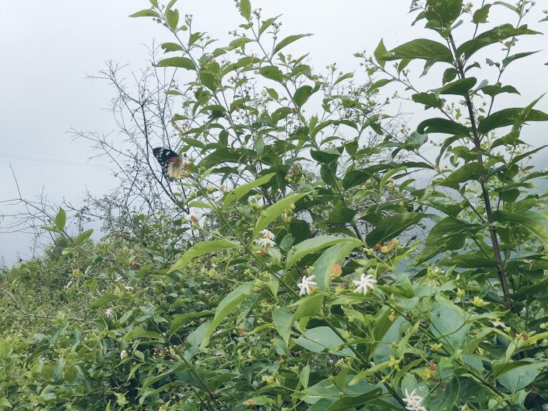 अलि तल्लो डाँडातिर झर्न थालेपछि एक किसिमको मन्द बास्ना आउन थाल्यो । बाटोमा सेताम्मे फूलदेखि । सुन्तला रङको भेट्नो, मसिना र सुगन्धित फूल बाटोभरी भेटिए । दायाँबायाँ खस्रो पात भएका रुखमा सुगन्धमय फूल र फूल फुल्दै गरेका कोपिला अनि देखिएको जंगलजति सबै देबवृक्षले चिनिने पारिजात भेटियो । संचारकर्मीहरु यति धेरै पारिजात भेटिएपछि तस्बिर कैद गर्न लागे । भिडियोहरु खिच्न थाले । एउटा समूह तल भञ्ज्याङपुग्दा पनि संचारकर्मीको एक समूह जंगलमै हराएरहेका थिए ।