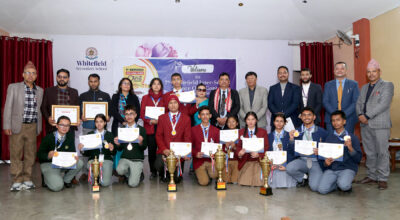 काठमाडौँसातौं ह्वाइटफिल्ड अन्तर विद्यालय विज्ञान हाजिरजवाफ प्रतियोगिता (काठमाडौँ उपत्यकाव्यापी) सम्पन्न भएको छ । उतm प्रतियोगीतामा