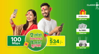 काठमाडौँउत्कृष्ट नेटवर्क इन्टरनेट सेवा प्रदायक कम्पनी क्लासिक टेकले यस वर्षको दशैं लक्षित विशेष अफर सार्वजनिक