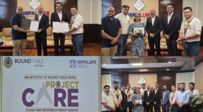 काठमाडौँनेपाल लाइफ इन्स्योरेन्स कम्पनी लिमिटेडले राउन्ड टेबल नेपालसँगको सहकार्यमा प्रोजेक्ट केयर अभियानअन्तर्गत सगरमाथामा थुप्रिएका ५,०००