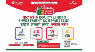 काठमाडौँएनआईसी एशिया क्यापिटल लिमिटेडले “एन आई सी एशिया इक्वीटी लिङ्कड इन्भेष्टमेण्ट स्किम” संचालन गर्ने भएको