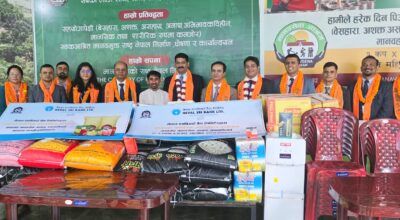 काठमाडौँ नेपाल एसबिआई बैंक लिले सामाजिक उत्तरदायित्व कार्यक्रम अन्तर्गत मानवसेवा आश्रम, धनगढी, कैलालीलाई अत्यावश्यक सामग्रीहरु