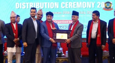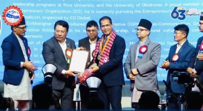काठमाडौँकस्मिक इलेक्ट्रिकल लिमिटेडका अध्यक्ष तथा प्रबन्ध निर्देशक महेश महतो ‘आन्त्रप्रेनर इन्जिनियर एक्सिलेन्स अवार्ड’बाट सम्मानित हुनुभएको