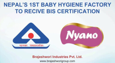 काठमाडौंनेपालको अग्रणी हाइजिन तथा शिशु डायपर निर्माता कम्पनी ब्रजेश्वरी इन्डस्ट्रिज प्रा.लि.ले भारतीय मानक ब्यूरो (बीआईएस)को