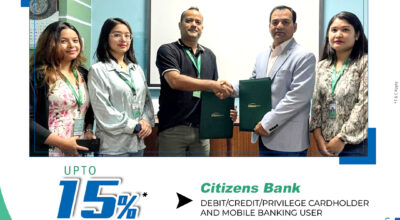 काठमाडौँ सिटिजन्स बैंक इन्टरनेसनल र ललितपुरस्थित सारंग हेल्थ केयरबीच सिटिजन्स बैंकका ग्राहकहरूलाई विशेष छुट दिने