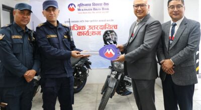 काठमाडौँमुक्तिनाथ विकास बैंक लिमिटेडले नेपाल प्रहरी वृत्त महराजगन्जलाई दुई थान मोटरसाइकल हस्तान्तरण गरेको छ ।