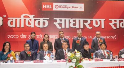 काठमाडौँहिमालयन बैंक लिमिटेडको तेतीसौँ वार्षिक साधारण सभा आज मिति २०८२ साल पौष ३० गते सफलतापूर्वक