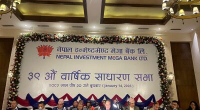 काठमाडौँनेपाल इन्भेष्टमेण्ट मेगा बैंक लिमिटेडले आफ्नो ३९औं वार्षिक साधारण सभा सफलतापूर्वक सम्पन्न गरेको छ ।
