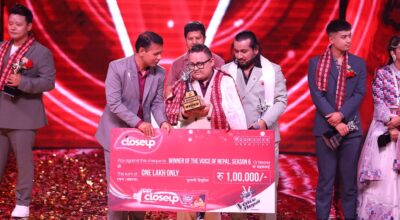 काठमाडौंभ्वाइस अफ नेपाल सिजन ६ को विजेता प्रोषेश पाण्डेलाई १ लाख रुपियाँको नगद पुरस्कार प्रदान