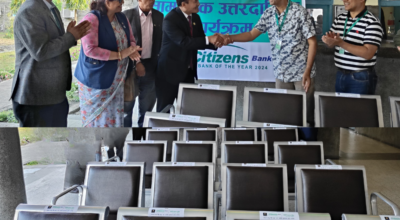 काठमाडौंसिटिजन्स बैंक इन्टरनेसनल लिमिटेडले आफ्नो सामाजिक उत्तरदायित्व अन्तर्गत पोखरा, घारीपाटनमा रहेको हिमालय आँखा अस्पताललाई १०