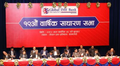 काठमाडौँग्लोबल आइएमई बैंक लिमिटेडको १९औँ वार्षिक साधारणसभा बुधबार काठमाडौँमा सम्पन्न भएको छ ।साधारणसभाले आर्थिक वर्ष