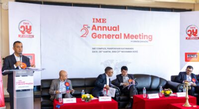 काठमाडौँआइएमई लिमिटेडले आफ्नो २५ औँ वार्षिक साधारण सभा मंगलबार काठमाडौँमा सम्पन्न गरेको छ । कम्पनीका