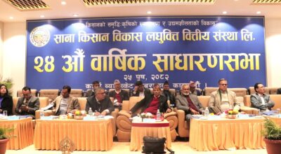 काठमाडौँसानाकिसान विकास लघुवित्त वित्तीय संस्था लिमिटेडको २४ औं वार्षिक साधारण सभा सफलतापूर्वक सम्पन्न भएको छ