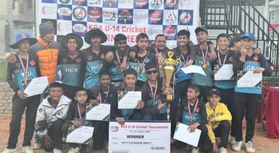 काठमाडौं । हिमालयन क्रिकेट एकेडेमीले केसीए यु–१४ क्रिकेट प्रतियोगिताको उपाधि जितेको छ। सोमबार भएको फाइनल