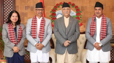 काठमाडौं । प्रधानमन्त्री केपी शर्मा ओलीसमक्ष राष्ट्रिय सूचना आयोगका नवनियुक्त प्रमुख आयुक्त डा.सुरेशप्रसाद आचार्यले आज