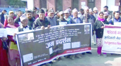 काठमाडौं । संरक्षणकर्मीहरूले ठमेलको १५ तलाको छायादेवी कम्प्लेक्स भत्काउनुपर्ने माग गर्दै आइतबार काठमाडौंमा प्रदर्शन गरेका