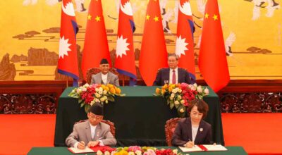काठमाडौं । नेपाल र चीनका प्रधानमन्त्रीको उपस्थितिमा व्यापार प्रवर्द्धन, प्राविधिक सहयोग आदानप्रदानलगायत विभिन्न आठ विषयमा