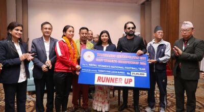 काठमाडौं । काठमाडौं महानगरपालिकाले साफ महिला च्याम्पियनसिपमा उपविजेता बनेको नेपाली महिला फुटबल टोलीलाई २५ लाख