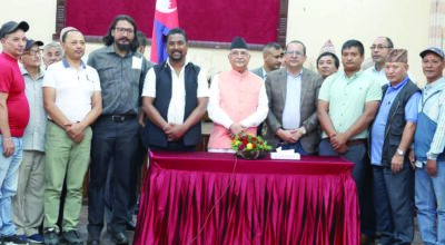 काठमाडौं । राष्ट्रपति रामचन्द्र पौडेलले नवनियुक्त प्रधानसेनापति अशोकराज सिग्देललाई नेपाली सेनाको महारथी पदको दर्ज्यानी चिह्न