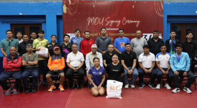 काठमाडौं । नेपाली राष्ट्रिय टेबल टेनिसका सिनियर र जुनियर खेलाडीलाई अन्तर्राष्ट्रिय खेल पोशाक निर्माण कम्पनी