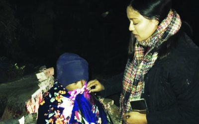 नायिका तथा निर्मात्री ऋचा शर्मा जाडोका लागि न्यानो कपडा वितरण गर्दै।
