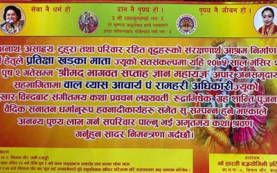 काठमाडौं । अनाथ, असाहय, टुहुरा तथा परिवाररहित बृद्धहरुको संरक्षणका लागि आश्रम निर्माण गर्ने उद्येश्यले आगामी