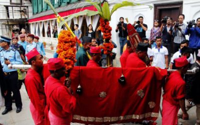 गोरखा । गोरखा दरबारस्थित दशैँ घरबाट काठमाडौँको हनुमानढोका दरबारका लागि फूलपाती सहितको डोली पठाइएको छ
