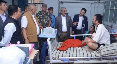 काठमाण्डौं। गृहमन्त्री रमेश लेखकले तीनकुने घटनामा घाइतेहरुलाई बुधबार साझँ काठमाण्डौंका विभिन्न अस्पताल पुगेर स्वास्थ्य अवस्थाबारे