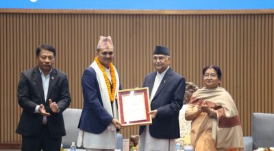 काठमाडौँ । प्रधानमन्त्री राष्ट्रिय प्रतिभा पुरस्कारबाट आज विभिन्न क्षेत्रका व्यक्तित्वहरु पुरस्कृत भएका छन् । नेपाल