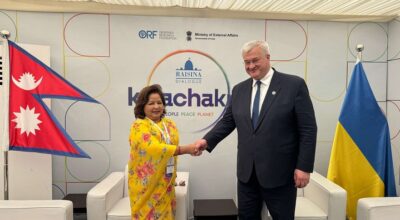 काठमाडौँ। परराष्ट्रमन्त्री डा आरजु राणा देउवा र युक्रेनका विदेशमन्त्री एन्द्री सिबिहाबीच नयाँ दिल्लीमा द्विपक्षीय भेटवार्ता