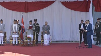 काठमाडौँ। मधेश प्रदेशका प्रमुख सुरेन्द्र लाभ कर्णले पद तथा गोपनीयताको शपथ लिएका छन् । राष्ट्रपति