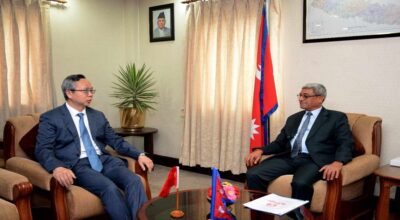 काठमाडौं । गृहमन्त्री रमेश लेखकसँग नेपालका लागि चीनका राजदूत चेन सङले शिष्टाचार भेट गरेका छन्