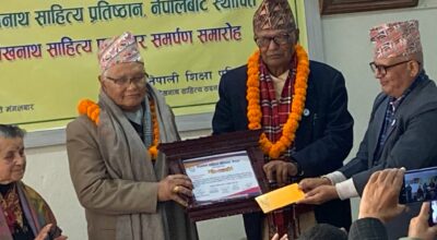 काठमाडौं । लेखनाथ साहित्य प्रतिष्ठान नेपालले मंगलबार साहित्यकार घनश्याम कँडेललाई १४२ औ लेखनाथ जन्मजयन्तिको सन्दर्भमा