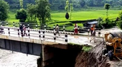 काठमाडौं । रामेछापको मन्थली–७ र खाँडादेवी–४ पकरबास जोड्ने भटौली पुल बाढीले कटानको जोखिममा परेको छ।