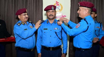 काठमाडौं। प्रहरी महानिरीक्षक दिपक थापाले पदोन्नति हुनुभएका ८ जना प्राविधिक प्रहरी अधिकृतहरूलाई दर्ज्यानी चिन्हद्वारा सुशोभित
