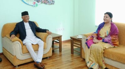 काठमाडौं । पूर्व राष्ट्रपति विद्यादेवी भण्डारीले नेकपा एमाले अध्यक्ष एवं प्रधानमन्त्री केपी शर्मा ओलीसँग भेटमा