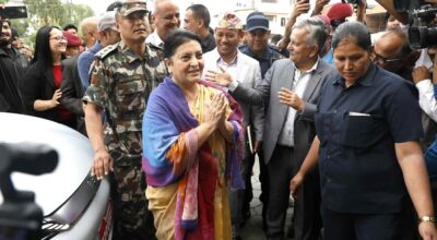 काठमाडौँ। पूर्वराष्ट्रपति विद्यादेवी भण्डारी प्रधानमन्त्री केपी शर्मा ओलीसँग छलफल गर्न नेकपा एमालेको पार्टी कार्यालय च्यासल