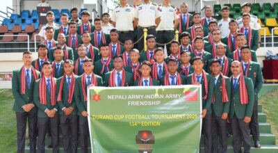 काठमाडौं । भारतीय सेनाको आयोजनामा हुने १३४ औं संस्करणको डुरान्ड कप फुटबल प्रतियोगितामा सहभागी हुन