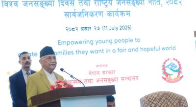 काठमाडौँ । प्रधानमन्त्री केपी शर्मा ओलीले विकास र समृद्धिसँगसँगै जनसङ्ख्याको समान विकास नभए मानव अस्तित्व