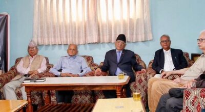 काठमाडौं । पाँच कम्युनिस्ट पार्टीका शीर्ष नेताहरूबीच शनिबार दिउँसो समसामयिक राजनीतिक विषयमा उच्चस्तरीय छलफल भएको