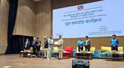काठमाडौं । अन्तर्राष्ट्रिय लागु औषध विरुद्धको दिवस मनाउँदै बिहीबार राजधानीमा मूल आयोजक समितिले आयोजना गरेको
