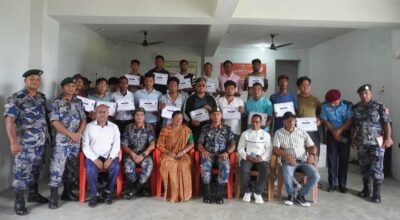 काठमाडौँ। सीमावर्ती क्षेत्रमा बसोबास गर्ने युवाहरूको सीप विकासका लागि सशस्त्र प्रहरीले सञ्चालन गरेको इलेक्ट्रीसियन तालिम