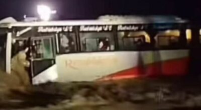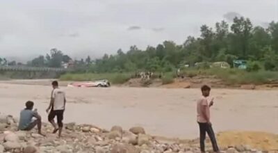 नवलपरासी । लगातारको झरी र वर्षादसंगै पूर्वी नवलपरासीको बिनयी खोलामा आएको बाढीले बगाएको बस भेटिएको
