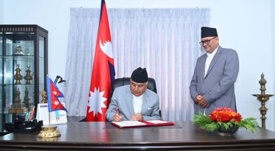 काठमाडौं । राष्ट्रपति रामचन्द्र पौडेलले ‘सहिद दशरथ चन्द स्वास्थ्य विज्ञान विश्वविद्यालय सम्बन्धमा व्यवस्था गर्न बनेको