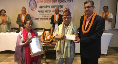 काठमाडौं। यस वर्षको कमलराज रेग्मी राष्ट्रिय सुकर्म पुरस्कार ‘जनमत’ पत्रिकाका सम्पादक मोहन दुवाललाई प्रदान गरियो