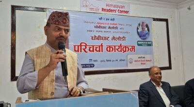 पोखरा। निबन्धकार मुकुन्दराज शर्माको निबन्ध सङ्ग्रह ‘धोबीघाट मेलोडी’ माथि परिचर्चा कार्यक्रम शनिबार रिडर्स कर्नर पोखरामा