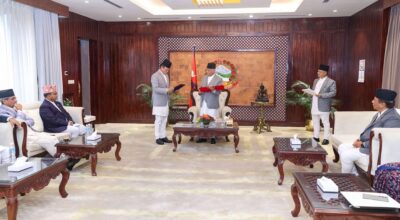 काठमाडौँ । प्रधानमन्त्री केपी शर्मा ओलीसमक्ष नवनियुक्त ऊर्जा, जलस्रोत तथा सिँचाइ राज्यमन्त्री खमबहादुर गर्बुजाले आज