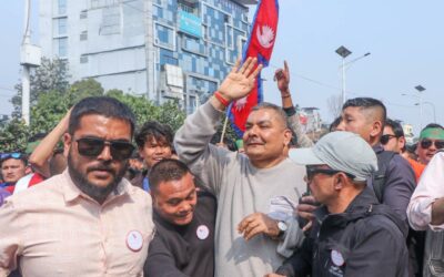 काठमाडौं । दुर्गा प्रसाईले संचालन गरेको ‘राष्ट्र बचाउ अभियान’ले बानेश्वर संसद भवन अगाडी गरेको ‘राजतन्त्र